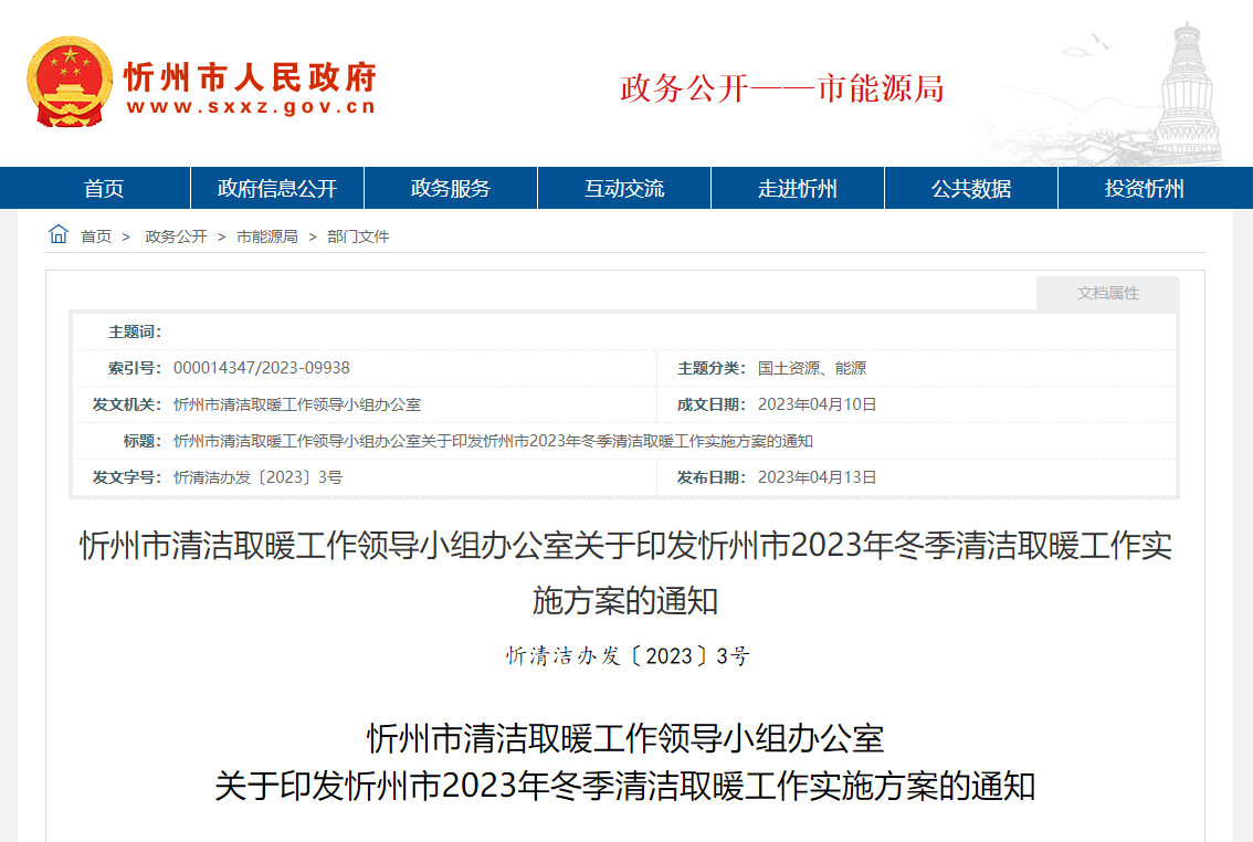 山西忻州發(fā)布冬季清潔取暖實(shí)施方案 力爭年底前全面完成目標(biāo)任務(wù)