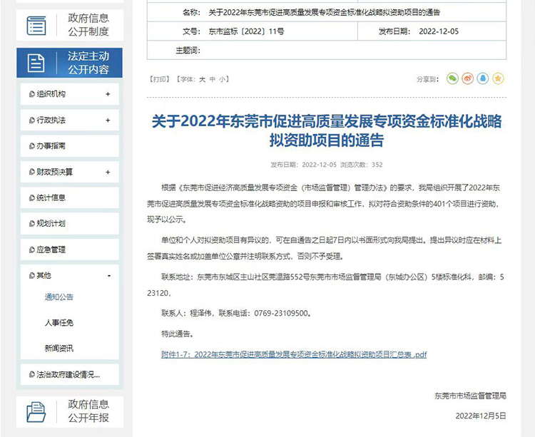 12月5日,東莞市市場監(jiān)督管理局官網發(fā)布了《關于2022年東莞市促進高質量發(fā)展專項資金標準化戰(zhàn)略擬資助項目的通告》,擬對本市符合資助條件的項目進行資助。其中,東莞市正旭新能源設備科技有限公司憑借參與制定《金銀花空氣源熱泵干燥通過技術要求》國...