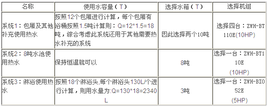 系統(tǒng)3:主機(jī)臺數(shù)=3噸/0.41×10小時=0.73臺,因此選擇1臺ZWH-BT052E(5HP);