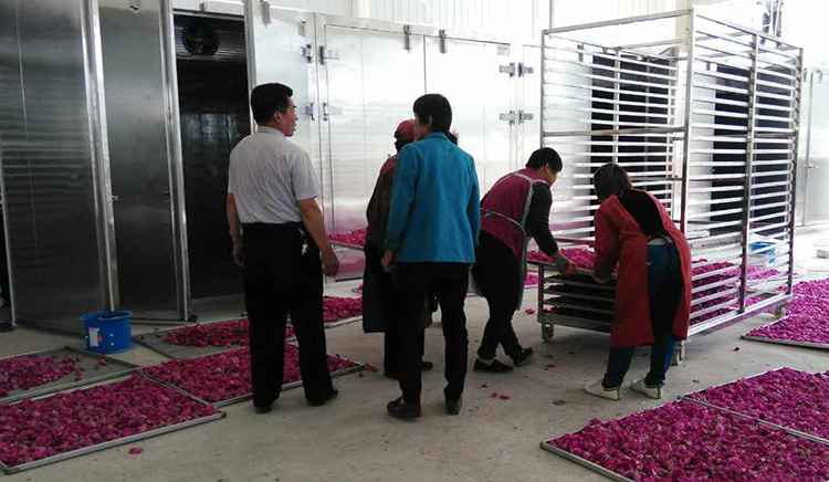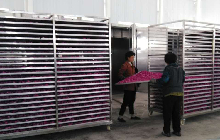 該項目以6P烘干除濕一體主機(jī)帶25立方烘干房作為標(biāo)準(zhǔn)型號,一批次可以放入鮮花蕊1800斤左右。整個烘干房可以裝入8臺物料車,每臺物料車分12—14層,層間距約為8—12厘米。物料車須使用304不銹鋼篩網(wǎng),避免對物料造成生產(chǎn)污染。