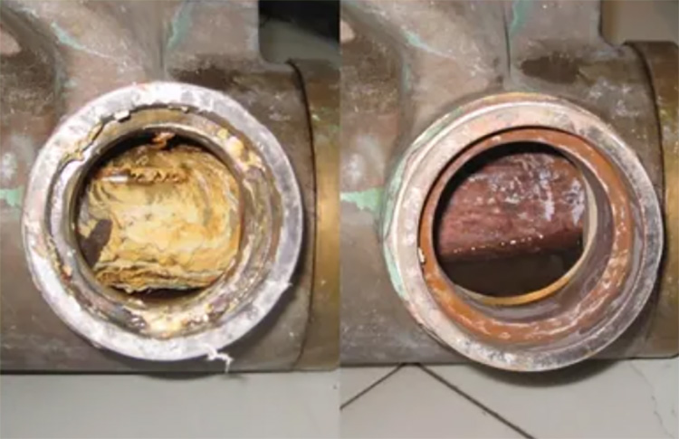 熱泵系統(tǒng)在制熱過程中,隨著熱水不斷蒸發(fā)和濃縮,水中鈣鎂離子會發(fā)生化學反應,產生難溶性固體沉淀物質,并粘附在換熱器管壁、熱水管道內壁、水箱內膽等位置,形成阻礙熱傳遞的“水垢”。由此可知水垢形成的兩個條件,一是水溫達到水垢生成的臨界點60℃以上,二是水質差、含鈣、鎂離子等重金屬離子較多。