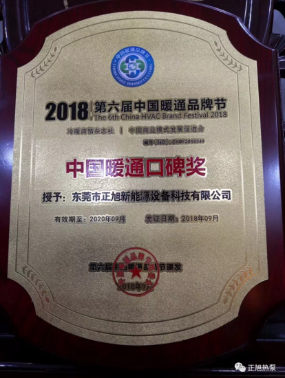 值得一提的是,本屆暖通品牌節(jié)頒獎(jiǎng)典禮上,結(jié)合數(shù)據(jù)統(tǒng)計(jì)、調(diào)研分析、問卷調(diào)查、電話訪談等多種形式,并憑借自身產(chǎn)品質(zhì)量好,售后服務(wù)佳等良好的口碑,正旭空氣能不負(fù)眾望,繼2016年獲得中國暖通品牌“創(chuàng)新產(chǎn)品獎(jiǎng)”后,再度榮獲“2018年中國暖通口碑獎(jiǎng)”。