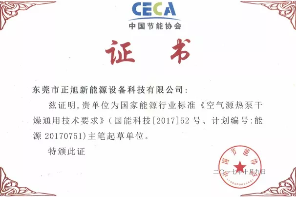 其中,正旭新能源為《空氣源熱泵糧食干燥機(jī)》、《空氣源熱泵煙葉干燥機(jī)》、《空氣源熱泵烤煙烤房技術(shù)規(guī)程》三項(xiàng)標(biāo)準(zhǔn)起草單位。此外,正旭是國家能源行業(yè)標(biāo)準(zhǔn)《空氣源熱泵干燥通用技術(shù)要求》主筆起草單位,《熱泵果蔬烘干機(jī)》、《戶用及類似用途空氣源熱泵采暖機(jī)組》等標(biāo)準(zhǔn)起草單位。