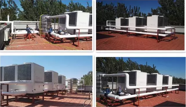 (2)空氣源熱泵+風機盤管;供水溫度一般在45℃左右。