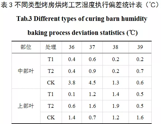 在溫度達(dá)到38℃、42℃、47℃(中部葉)和48℃(上部葉)、54℃時(shí),測定實(shí)際溫濕度與目標(biāo)溫濕度的偏差。