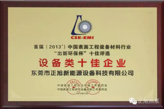 值得一提的是,2013年由中國(guó)表面工程協(xié)會(huì)主辦的首屆(2013’)中國(guó)表面工程設(shè)備材料行業(yè)“出新環(huán)保杯”十佳評(píng)選表彰大會(huì)上。經(jīng)過(guò)十佳評(píng)選專(zhuān)家組十三名專(zhuān)家的嚴(yán)格評(píng)選和一致認(rèn)定,正旭電鍍專(zhuān)用熱泵為電鍍行業(yè)用戶(hù)取得了良好經(jīng)濟(jì)效益和節(jié)能減排效果,被授予《設(shè)備類(lèi)十佳企業(yè)》稱(chēng)號(hào),成為首個(gè)被電鍍行業(yè)認(rèn)可而獲頒此項(xiàng)殊榮的熱泵品牌。