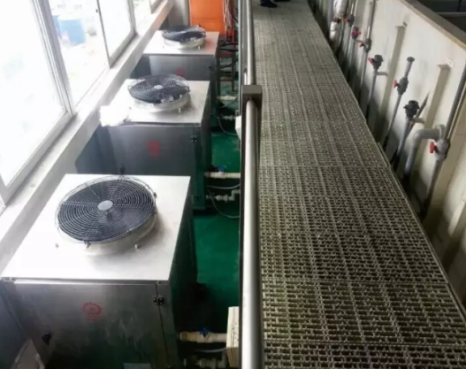 通過(guò)熱泵主機(jī)加熱儲(chǔ)熱水箱的熱水,再由熱水通過(guò)槽內(nèi)放置的蛇形鈦管加熱槽液,由溫度控制器控制水管電磁閥的開(kāi)關(guān)來(lái)控制溫度,有換熱溫差,可集中供熱。適用于手動(dòng)線(xiàn)、連續(xù)鍍線(xiàn)等槽液較小,電鍍加熱節(jié)能槽較多的電鍍廠(chǎng)。