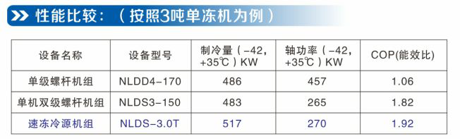 2、正旭速凍冷源機組比單機雙級螵桿機組,降低造價20%以上。為用戶節(jié)約了很大的初期投資成本。