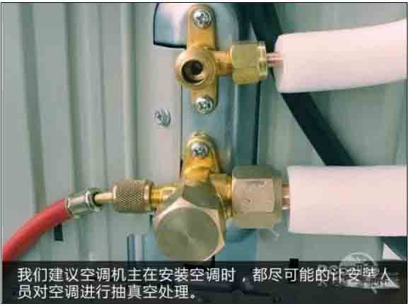 另外,R410A的機(jī)器由于系統(tǒng)制冷劑標(biāo)量要求精確,安裝時(shí)必須進(jìn)行抽真空操作。
