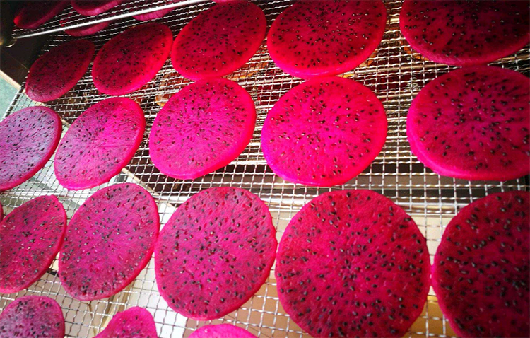 一般用55℃-75℃烘15-20小時(shí)直至火龍果干含水量在10%-15%左右。