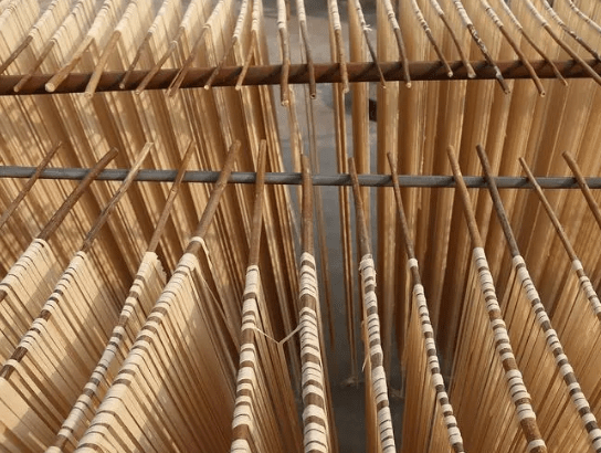 1. 剛進(jìn)入烘干房等待烘干的掛面長(zhǎng)度一般在1.4米左右,水分含量大,可以加強(qiáng)空氣流動(dòng)促進(jìn)面條去濕,使掛面初步定型,此階段烘干時(shí)間約為30分鐘,溫度在26攝氏度左右,濕度在55%-65%之間。