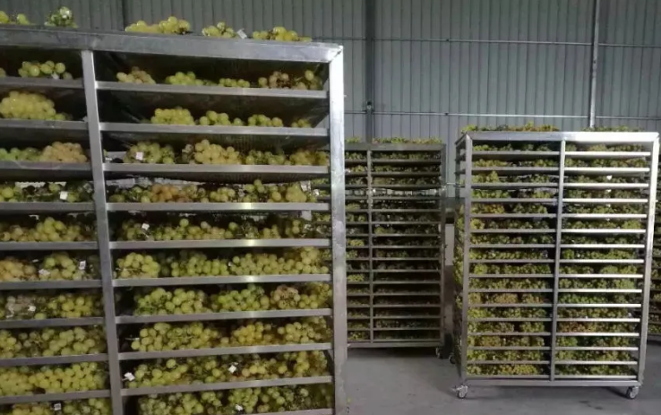 2. 中期將溫度升至55攝氏度,烘干10小時,進行大量排濕,此時葡萄脫水率為70%左右;