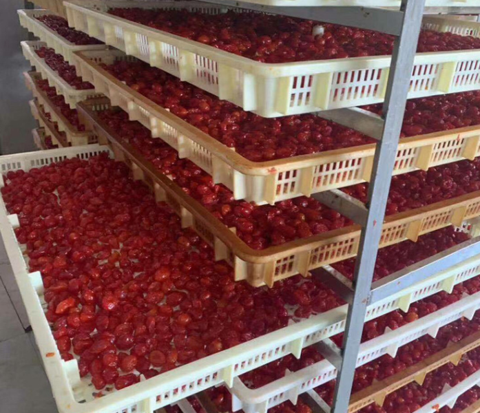 1. 采用多溫區(qū)分層控溫,速度可調、自動控制,烘制出的圣女果顏色鮮亮,果形圓潤,收縮均勻,含糖量適中,易于咀嚼;