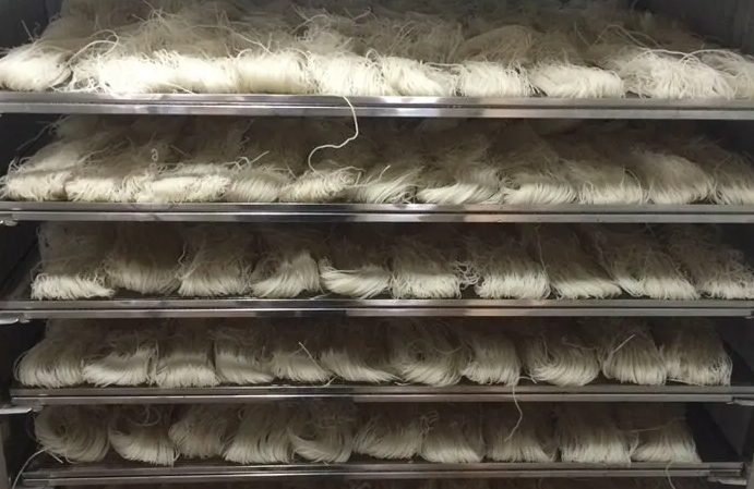 2、 將過夜冷凍后的紅薯粉條推入烘干房中,開始進(jìn)行升溫排濕干燥;