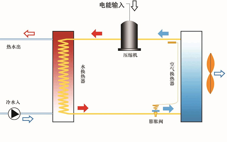 首先,在工作原理方面,空氣源熱泵和空調(diào)的制冷系統(tǒng)原理相同,都是采用“逆卡諾循環(huán)”工作原理,以壓縮機(jī)為動(dòng)力,制冷劑為載體,將熱量進(jìn)行轉(zhuǎn)移。空氣源熱泵是將空氣中的低位熱能轉(zhuǎn)換成我們能利用的高位熱能,通過壓縮機(jī)系統(tǒng)運(yùn)轉(zhuǎn)工作,吸收空氣中熱量實(shí)現(xiàn)取熱。而一般的空調(diào)在制冷時(shí),它是通過冷媒在蒸發(fā)器的物理相態(tài)變化吸收室內(nèi)的熱量,再通過室外冷凝器的放熱來實(shí)現(xiàn)制冷的。