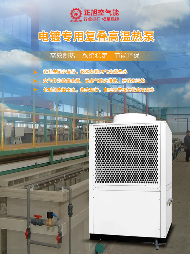 正旭率先倡導(dǎo)熱泵在工業(yè)領(lǐng)域中的應(yīng)用,專門(mén)組織了研發(fā)團(tuán)隊(duì)針對(duì)電鍍行業(yè)的應(yīng)用需求,研發(fā)了專門(mén)適用于高溫電鍍行業(yè)的專用機(jī)型。研發(fā)生產(chǎn)的高溫?zé)岜茫ㄖ茻崴罡邷囟?5℃)熱泵從中溫60℃~65℃上升到80℃~95℃,難度較大,并根據(jù)工業(yè)應(yīng)用量身打造,一體冷熱聯(lián)供雙用機(jī),更大幅度的提高能效比。正旭技術(shù)攻堅(jiān),為表面電鍍等工廠節(jié)能降耗帶來(lái)實(shí)惠,讓高溫?zé)岜迷陔婂兊裙I(yè)領(lǐng)域中的應(yīng)用深入普及。