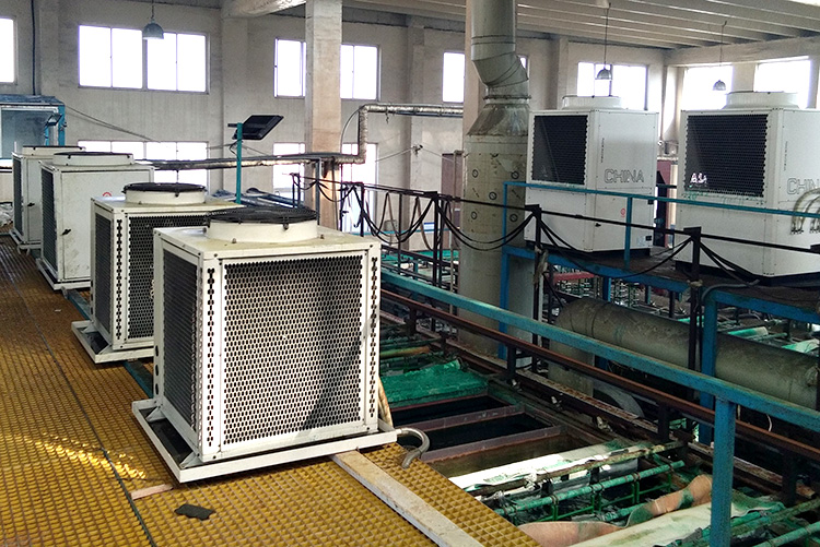 作為一款新型節(jié)能環(huán)保的設(shè)備,空氣源熱泵在生活熱水、居民采暖及農(nóng)業(yè)領(lǐng)域上的應(yīng)用已廣泛被市場(chǎng)接受,但在工業(yè)領(lǐng)域卻不被人們所熟知。其實(shí),空氣源熱泵目前也能成熟的應(yīng)用在印染、電子、電鍍等工業(yè)領(lǐng)域,幫助客戶有效節(jié)能減排、省錢(qián)增效。以正旭在山東某電鍍廠的高溫?zé)崴?xiàng)目為例,客戶提出對(duì)其鍍鎳、鍍鉻生產(chǎn)線進(jìn)行節(jié)能改造,經(jīng)實(shí)地調(diào)研并與廠方多次深入溝通,我們?yōu)槠渑渲昧?P、7P、10P、13P高溫機(jī)共27臺(tái)空氣源高溫?zé)岜茫ǚ鷻C(jī)+鈦管),總制熱量達(dá)到735KW,滿足了客戶生產(chǎn)需求,每年為客戶節(jié)能上百萬(wàn)元電費(fèi),得到了客戶的高度評(píng)價(jià)。