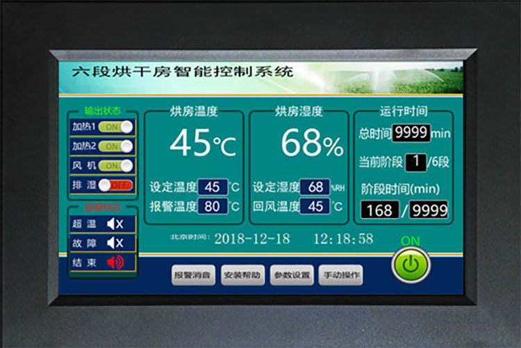 熱泵烘干機(jī)采用智能分段烘干的方式模擬自然干燥,是一種比較溫和的烘干方式。前期只需根據(jù)物料屬性設(shè)置好不同時(shí)間段的烘干溫濕度,系統(tǒng)自動(dòng)根據(jù)烘干曲線調(diào)節(jié)溫濕度。