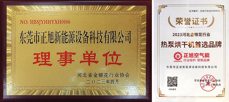 此次獲獎?wù)蔑@河北省金銀花行業(yè)對正旭熱泵烘干機的認可與肯定,作為《金銀花空氣源熱泵干燥通用技術(shù)要求》國家標準起草單位之一,正旭獲此殊榮也將更加努力、再接再厲與相關(guān)客戶攜手共贏,持續(xù)創(chuàng)新熱泵烘干技術(shù),幫助金銀花種植戶及相關(guān)深加工企業(yè)節(jié)能省錢、省人工,提升金銀花品質(zhì)及附加值,實現(xiàn)降本、提質(zhì)、增收。