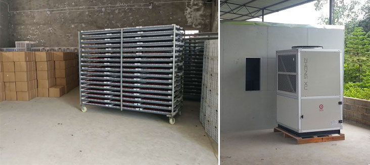 為提升榛子的烘干質(zhì)量,需要一種新型的干燥方式,空氣源熱泵烘干機(jī)就是一種不錯(cuò)的選擇。其利用少量電能驅(qū)動(dòng)壓縮機(jī)做功,通過冷媒的物理相變將空氣中的熱量轉(zhuǎn)移到烘干房內(nèi)進(jìn)行物料干燥,節(jié)能環(huán)保且不受天氣影響,可以實(shí)現(xiàn)全天候24小時(shí)連續(xù)化烘干,不會(huì)產(chǎn)生廢氣、廢水以及固體排放物,十分適合用于榛子果實(shí)的烘干。