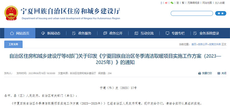 為加快推進寧夏地區(qū)冬季清潔取暖項目建設,如期完成清潔取暖各項目標任務,實現(xiàn)城鄉(xiāng)居民清潔取暖、溫暖過冬,持續(xù)改善大氣環(huán)境質量,助推加快區(qū)域經濟綠色發(fā)展,寧夏回族自治區(qū)于近日發(fā)布了《寧夏回族自治區(qū)冬季清潔取暖項目實施工作方案(2023—2025年)》(以下簡稱“方案”)。