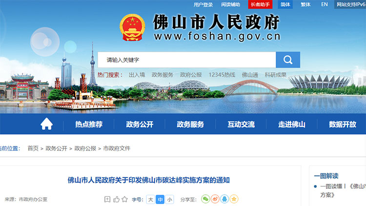 為落實碳達(dá)峰相關(guān)重大政策部署及工作安排,有序推進(jìn)佛山市碳達(dá)峰工作,佛山市于近日發(fā)布《佛山市碳達(dá)峰實施方案》(以下簡稱“方案”),以經(jīng)濟(jì)社會發(fā)展全面綠色轉(zhuǎn)型為核心,在高效利用資源、嚴(yán)格保護(hù)生態(tài)環(huán)境、應(yīng)對氣候變化的基礎(chǔ)上,將碳達(dá)峰納入經(jīng)濟(jì)高質(zhì)量發(fā)展和生態(tài)文明建設(shè)整體布局,系統(tǒng)推進(jìn)佛山市各領(lǐng)域碳達(dá)峰工作。