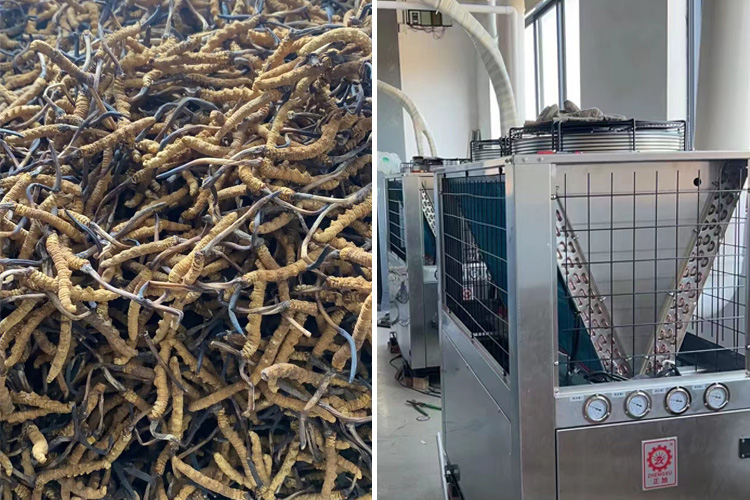 蟲草在采摘回來之后需要進(jìn)行干燥處理,蟲草干燥條件較為苛刻。傳統(tǒng)的干燥方法一般是借助太陽晾曬或者燃煤鍋爐干燥。日光晾曬受天氣影響大,加上蟲草價(jià)格高昂,晾曬干燥無法控制蟲草干燥品質(zhì),容易造成大量成本支出。燃煤鍋爐火候難以控制,干燥品質(zhì)不均,再加上燃煤鍋爐在干燥過程中會(huì)產(chǎn)生大量有害氣體,對(duì)蟲草品質(zhì)造成污染,難以在市場賣出好價(jià)錢。所以蟲草干燥需要一種新型方式,空氣源熱泵烘干就是一個(gè)不錯(cuò)的選擇。