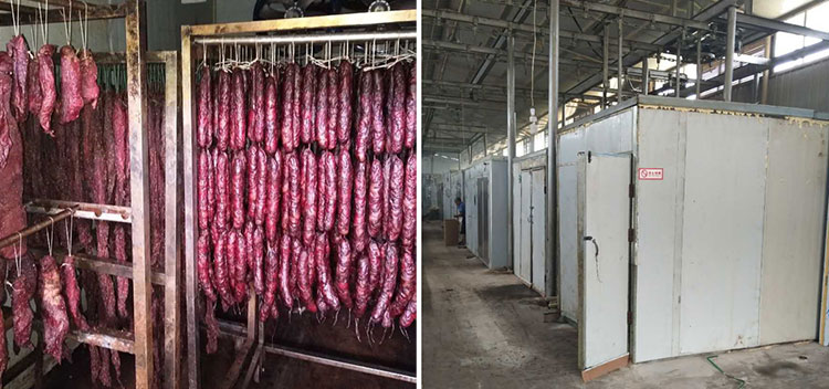 以正旭在四川某食品公司的臘腸烘干項(xiàng)目為例,其之前一直采用燃煤熱風(fēng)爐的方式進(jìn)行臘腸烘制,不僅耗人工,還因無(wú)法精準(zhǔn)控制溫濕度導(dǎo)致不同批次臘腸風(fēng)味不一,無(wú)法保障品質(zhì)的一致性。后經(jīng)多方考察了解與正旭進(jìn)行合作,我們?yōu)槠谂渲昧?臺(tái)15P熱泵烘干機(jī)組,改造后的烘干系統(tǒng)不僅節(jié)省了人力成本,智能化的控制技術(shù)還使烘制后的臘腸口味更統(tǒng)一,產(chǎn)品質(zhì)量實(shí)現(xiàn)標(biāo)準(zhǔn)化。最終烘制出的臘腸堅(jiān)韌而有彈性,色澤鮮艷,吃起來(lái)味道醇香,風(fēng)味獨(dú)特,得到了客戶(hù)的極大好評(píng)!