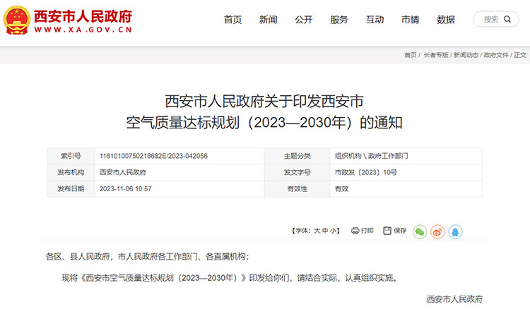 為推動西安市環(huán)境空氣質(zhì)量逐步改善,促進全市經(jīng)濟、社會和環(huán)境協(xié)調(diào)發(fā)展,西安市于近日發(fā)布《西安市空氣質(zhì)量達標(biāo)規(guī)劃(2023—2030年)》(以下簡稱“規(guī)劃”), 規(guī)劃以實現(xiàn)空氣質(zhì)量達標(biāo)以及保護人體健康為目標(biāo),深入推進西安市PM2.5和O3污染協(xié)同控制,逐步實現(xiàn)空氣質(zhì)量全面達標(biāo)。