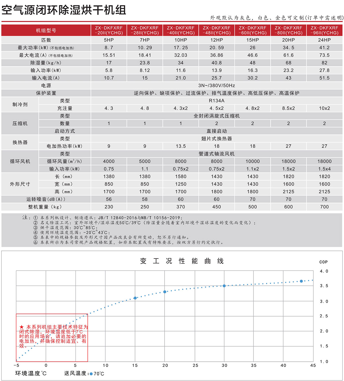 ●在使用方面: 采用閉環(huán)式除濕干燥方式,搭配先進的通風(fēng)換氣及進風(fēng)除濕系統(tǒng)設(shè)計,使得烘干機組的COP完全可以穩(wěn)定達到3.0以上,節(jié)能效果顯著。